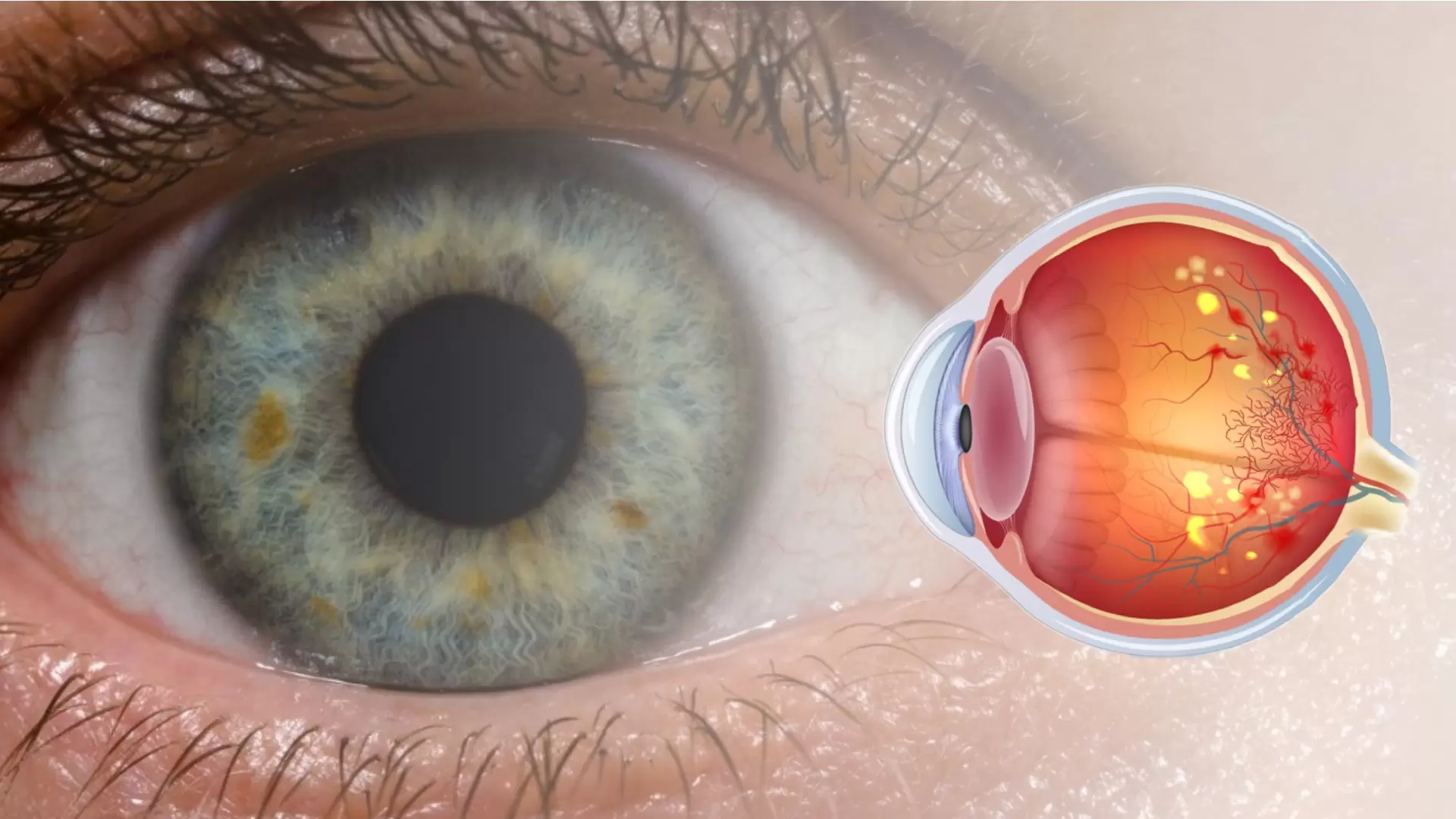 Diabetes-related retinopathy is caused by elevated blood sugar levels. Too much sugar in your bloodstream can damage your retina over time — the area of your eye that detects light and transmits information to your brain via a nerve in the back of your eye (optic nerve). Diabetes causes blood vessel damage throughout the body.